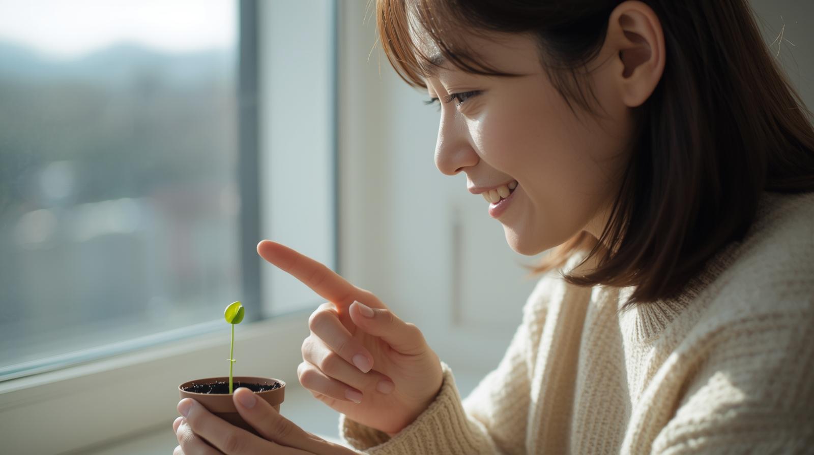 「枯らしそう」と思っていたのに、芽が出るたび嬉しくなる。