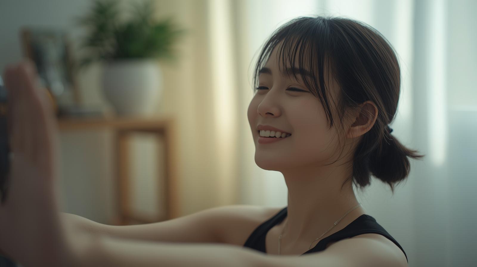 胸式呼吸と動きを丁寧につなげると、意識が体に戻ってきます。仕事や人間関係で散らかった思考が、少しずつ“落ち着く”感覚が出てきます。 - 「鏡を見るたび、なんか違う」